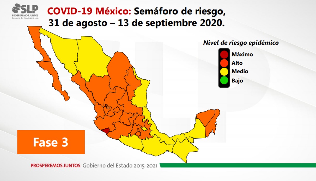 La Secretaria de Salud en el estado, Mónica Liliana Rangel Martínez, detalló que el semáforo es indicativo del riesgo que se tiene, qué acciones podemos hacer y no hacer, cuidar a la familia con factores de riesgo, uso de medidas de protección al salir, “continuaremos en Semáforo Naranja por quince días más, no esperemos en casa si nos falta aire, acudamos a la unidad Centinela de la FENAPO, donde tenemos lista una terapia de oxígeno primordial”, alertó la titular de Salud.