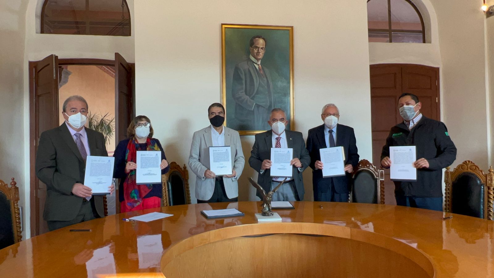 Firmaron además el Convenio, el director de Atención Médica de los Servicios de Salud, Juan Carlos Negrete Ayala; el director general del Hospital Central, Jorge Aguilar García; Federico Arturo Garza Herrera, secretario general de la UASLP y la directora del Centro de Documentación Histórica “Lic. Rafael Montejano y Aguiñaga”, Rosa María Martínez Rider.