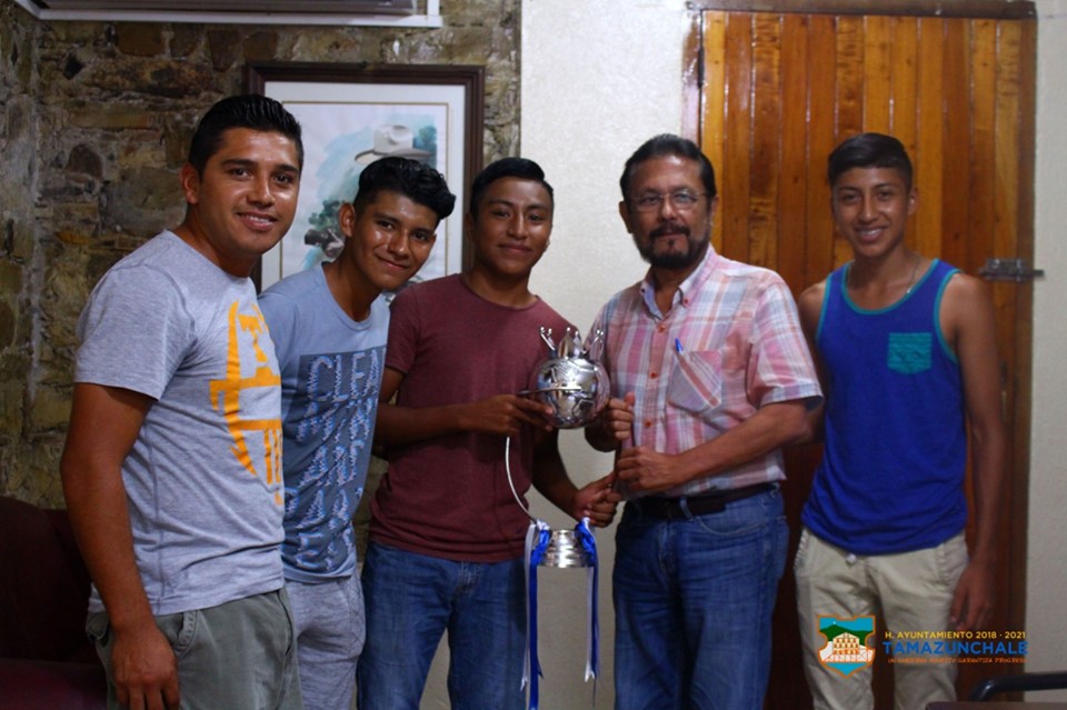 Después de haber obtenido el tercer lugar en Tampico, Tamaulipas jóvenes integrantes del selectivo del Centro de Formación Tamazunchale en compañía del instructor Sósimo García Jonguitud hicieron entrega del trofeo al presidente municipal Arq. Juan Antonio Costa Medina.