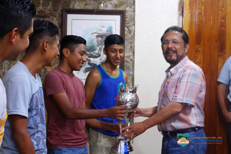 SORPRENDEN AL PRESIDENTE TOÑO COSTA CON TROFEO OBTENIDO POR JÓVENES DEL CEFOR TAMAZUNCHALE.