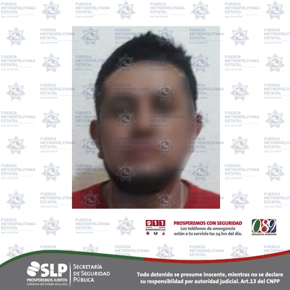 SAN LUIS POTOSÍ, SLP.- Gracias a la atención de un llamado de auxilio recibido en la Línea de Emergencia 9-1-1, Policías Metropolitanos de la Unidad Especializada en la Atención a la Violencia de Género, detuvieron a un hombre de 38 años, por el presunto delito de violencia familiar, en Ciudad Satélite.