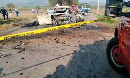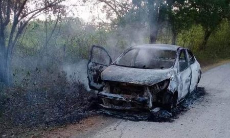 SE PRESUME QUE ACRIBILLARON A LAS VÍCTIMAS Y LUEGO LES PRENDIERON FUEGO TANQUIÁN.- Tres personas quedaron totalmente calcinadas dentro de un vehículo...