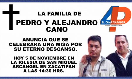Los restos de Pedro Cano Navarrete y Alejandro Cano Mendez serán trasladados a la iglesia San Miguel Arcángel de Zacatipan el día...