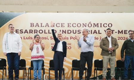 • “Vamos a continuar dándole dignidad a nuestro pueblo y a nuestra patria”, anunció. • “Vamos a traer el tren México-San Luis...