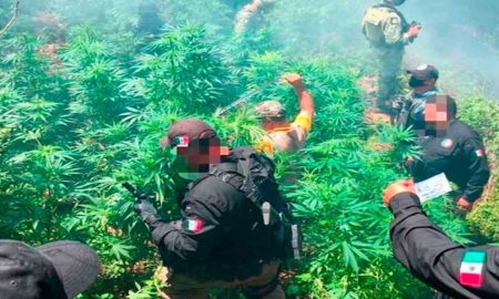 En el estado de Hidalgo, personal de la Fiscalía General de la República (FGR), incineró más de 700 plantas de marihuana, e...