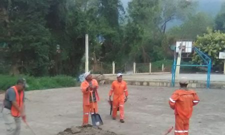 Tamazunchale, S.L.P.- Personal de Aseo Público, Parques y Jardines, a cargo de Manuel Sánchez Romero, realiza chapoleo y limpieza de lodo, piedras,...
