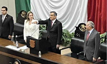 A LA CEREMONIA DE TOMA DE PROTESTA COMO GOBERNADOR, NO ASISTIÓ EL MANDATARIO SALIENTE, GARCÍA CABEZA DE VACA, QUIEN PERDIÓ EL FUERO...