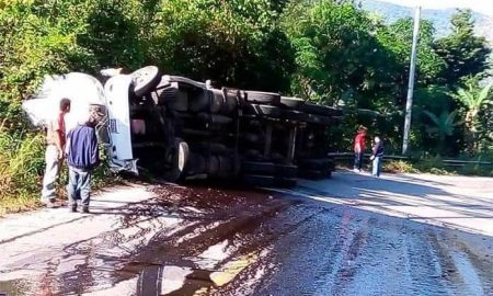DERRAMÓ PARTE DE LA CARGA SOBRE LA CINTA ASFÁLTICA. TAMAZUNCHALE.- Entre las localidades Texquitote y Palictla, se volcó un tráiler que transportaba...