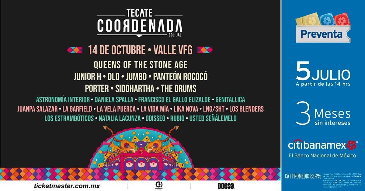 ¡Prepárate para vibrar con la experiencia musical más esperada de este año en Guadalajara! El festival Tecate Coordenada está de regreso y esta vez llevará la experiencia al siguiente nivel. El próximo 14 de octubre el incomparable Valle VFG se convertirá nuevamente en la coordenada de la música más importante del país; un día lleno de agrupaciones increíbles, vibraciones positivas y momentos inolvidables.