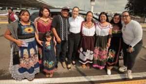 mientras que mujeres de los pueblos originarios enarbolaban una bandera de colores purépechas y le obsequiaron artesanías tradicionales como muestra del apoyo y simpatía de su comunidad hacia el trabajo de la doctora.