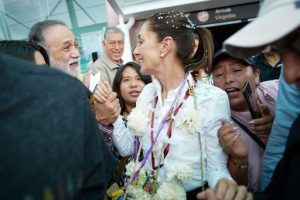 Otros simpatizantes se dieron cita en el aeródromo de la entidad y aprovecharon la oportunidad para tomarse fotografías y refrendarle su entusiasmo, destacándola como una mujer valiente y capaz, al haber tomado la batuta para luchar por la continuidad de la Cuarta Transformación, al tiempo de colocarle floridos collares en señal de simpatía.