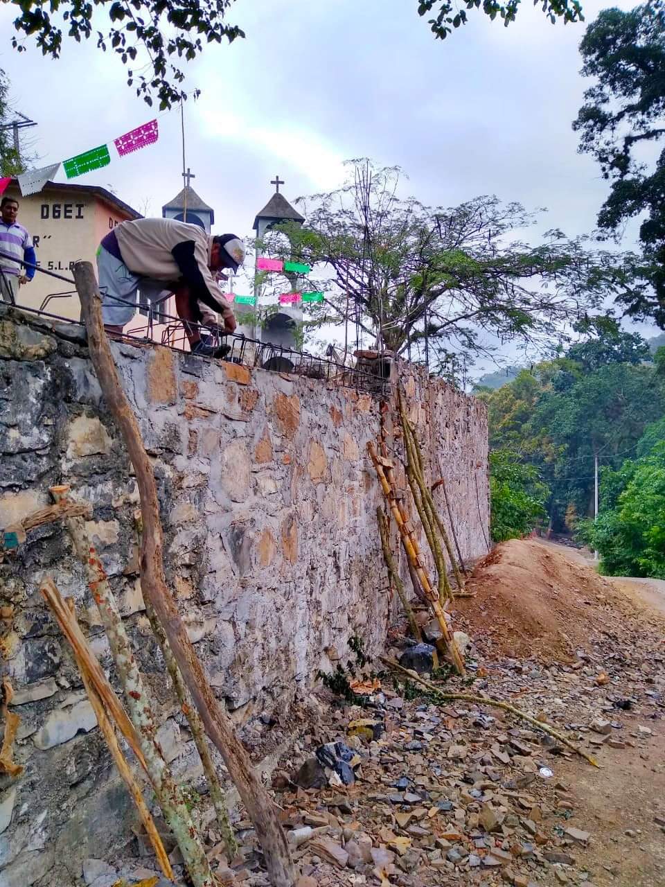 Dicha obra consiste en la construcción de un muro que beneficiará a los vecinos de la localidad, quienes mencionaron que en el lugar donde hoy se realiza la construcción, se encuentra la iglesia y un salón de desayunos escolares mismos que estaban en riesgo con posibilidad de agrietamiento o derrumbe.