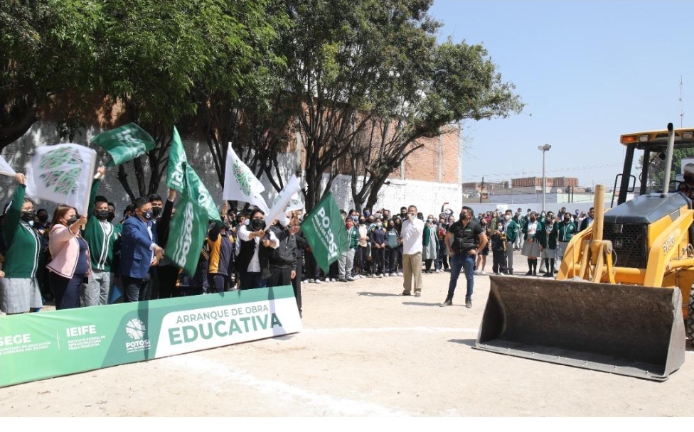 Ante la comunidad educativa de la escuela secundaria general “Jaime Torres Bodet” en la ciudad capital, el Gobernador del Estado Ricardo Gallardo Cardona puso en marcha la construcción de una cancha de futbol uruguayo con una inversión de dos millones 358 mil pesos; además, entregó veinte equipos de cómputo en beneficio de mil 270 alumnas y alumnos.