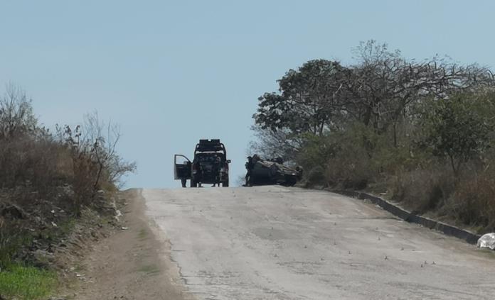 Policías estatales persiguieron a civiles que viajaban en una camioneta, y éstos en su intento por escapar arrojaron ponchallantas, pero sufrieron un accidente en una de las entradas al fraccionamiento Lomas de Santiago.