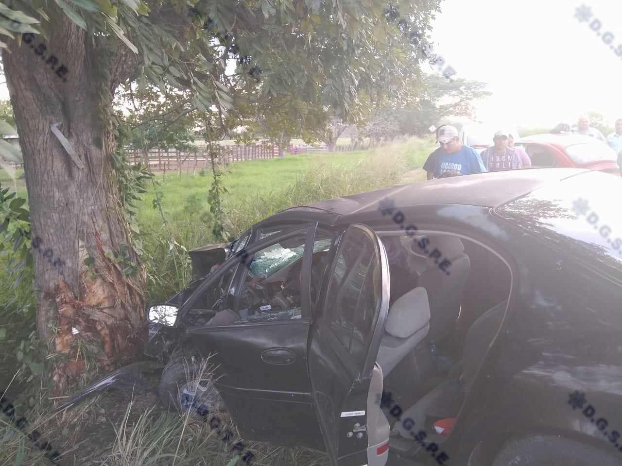 San Vicente Tancuayalab, S. L. P.-Elementos de la policía estatal acudieron al reporte de un accidente sobre la carretera estatal San Vicente-el Higo Veracruz, a la altura del rancho el Rodeo, localizando un vehículo impactado contra un árbol.