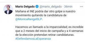 La Unidad de Fiscalización del Instituto Nacional Electoral (INE) propuso hacer efectivo el retiro del registro de la candidatura de Mónica Rangel Martínez como candidata de Morena a la gubernatura de San Luis Potosí al determinar que no entregó en tiempo su informe de gastos de precampaña.