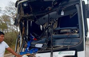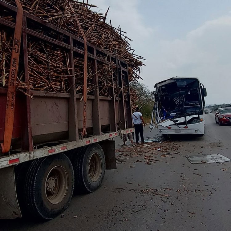 Cerca de la delegación de El Pujal se suscitó un choque entre un autobús de la línea Transportes Vencedor y un camión que transportaba caña.