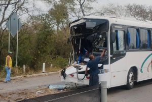 En el tramo comprendido entre la delegación de El Pujal y el ejido La Calera, el guiador del autobús número económico 381 de Transportes Vencedor impactó por alcance el camión.