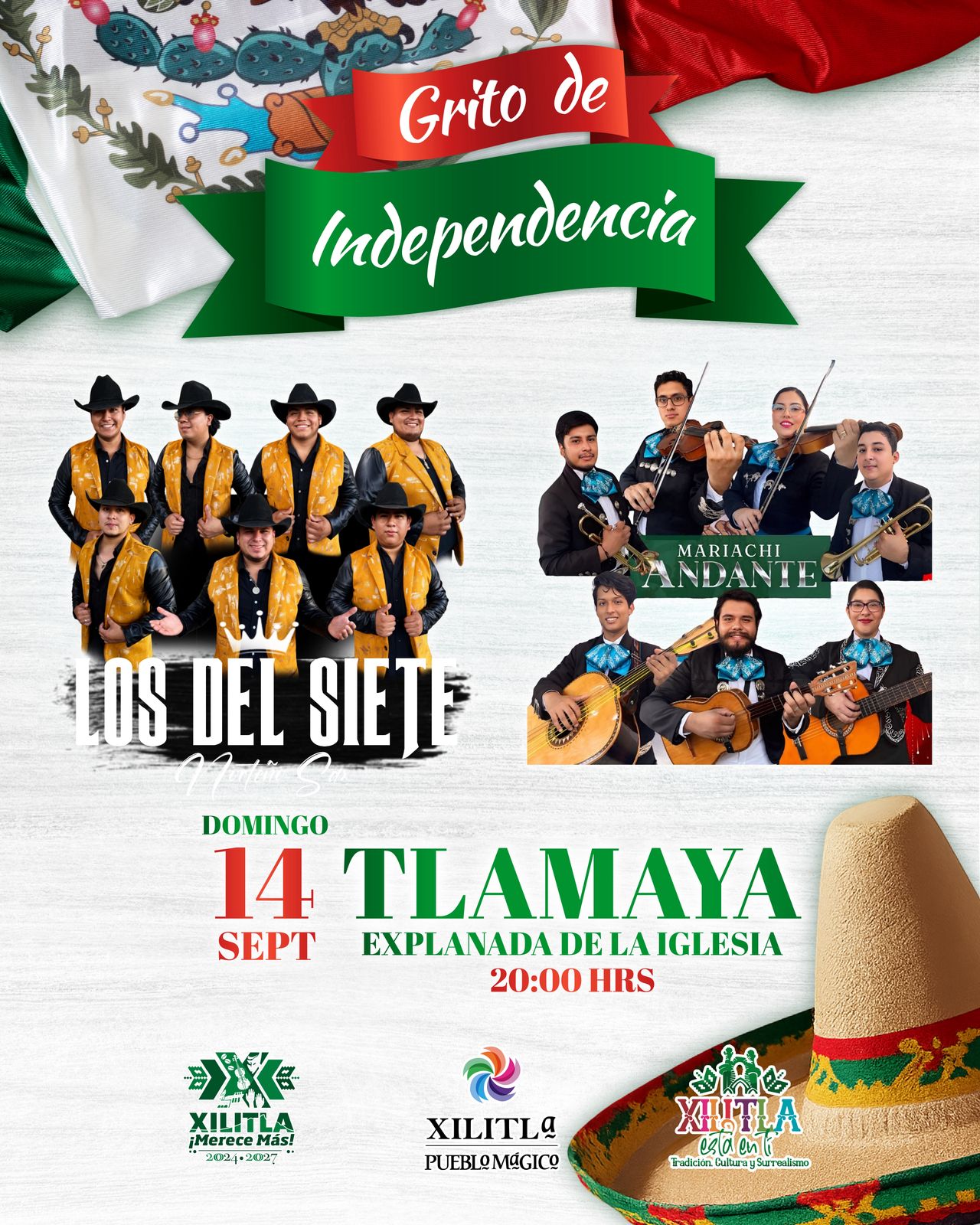 El presidente municipal de Xilitla, Óscar Márquez, invita a toda la ciudadanía a celebrar juntos el GRITO DE INDEPENDENCIA en la comunidad de Tlamaya.