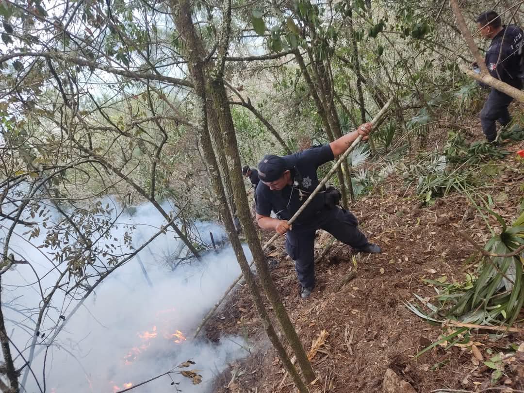 Desde el reporte del siniestro, brigadas de pobladores y personal de Seguridad Pública han trabajado en conjunto, utilizando herramientas manuales y equipo para controlar el fuego.