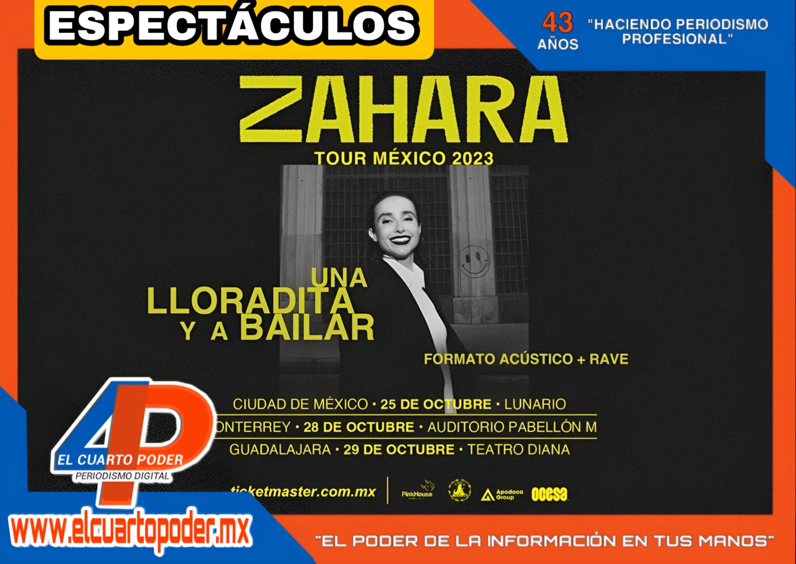 Prepárate para cantar junto a Zahara y sus mejores éxitos en Ciudad de México, Monterrey y Guadalajara. Los boletos para todas la ciudades estarán a la venta a partir del jueves 29 de junio en las taquillas de los inmuebles o a través de www.ticketmaster.com.mx.