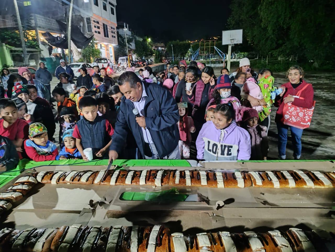 Tamazunchale, S.L.P.- El presidente municipal, Adelaido Cabañas, celebró el Día de Reyes de una manera especial al compartir enormes roscas de Reyes con las familias de diversos barrios y colonias del municipio.