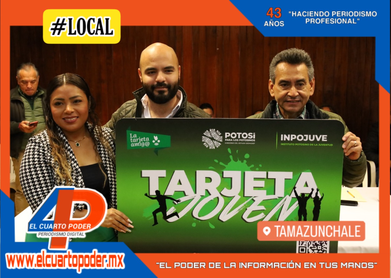En el evento, se dio a conocer la “Tarjeta Joven” que será presentada en los negocios participantes que otorgarán beneficios a los jóvenes; este programa, -explico el titular del INPOJUVE-, nació de una iniciativa de un Consejo Empresarial Juvenil, que a nivel Estado contó inicialmente con 120 empresas participantes y hoy en día se lleva al interior, siendo Tamazunchale el primer municipio donde se estará aplicando.