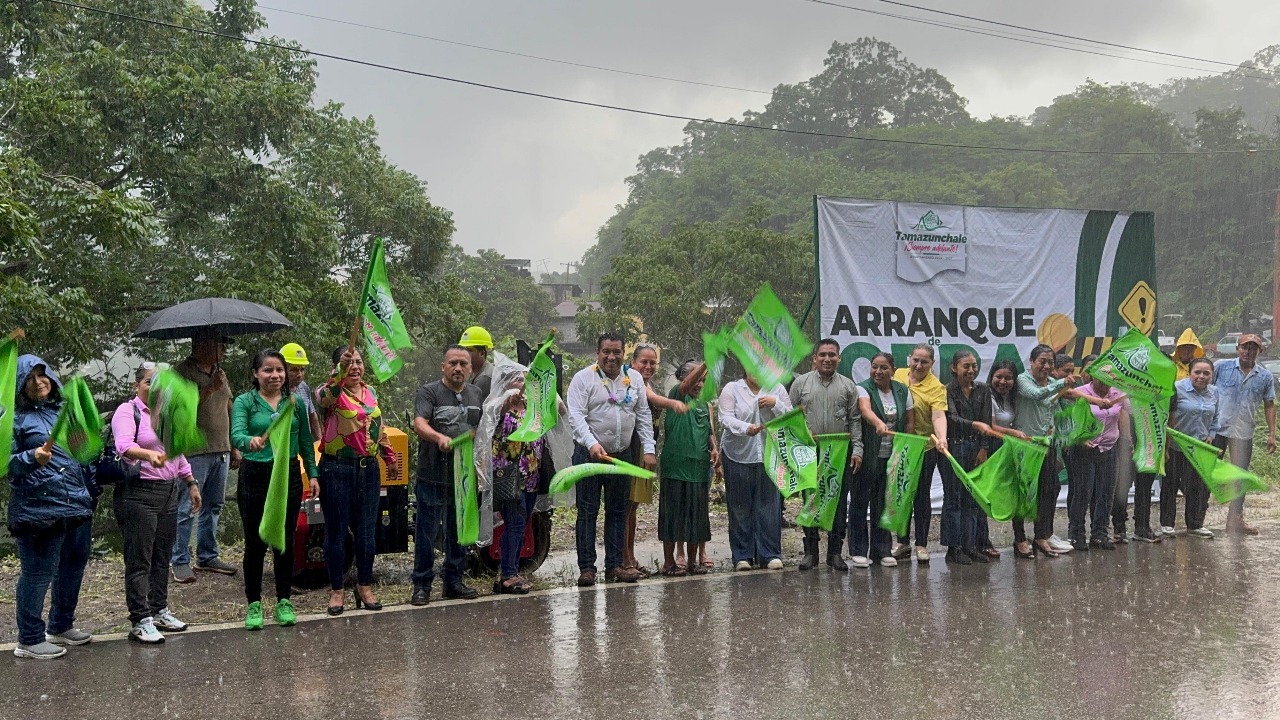 Tamazunchale, S.L.P. – Ni la lluvia detuvo el inicio de la construcción del andador urbano en la localidad de La Fortuna, una obra largamente solicitada por los vecinos y que este martes fue puesta en marcha por el presidente municipal Adelaido Cabañas Hernández.