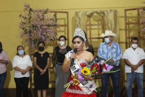 Recibió la corona de manos del Alcalde Crescencio Rivera Guerrero y de la Srita. Azucena Rivera Hervert quien asistió en representación de la Presidenta del DIF Cira Nely Hervert Camargo.
