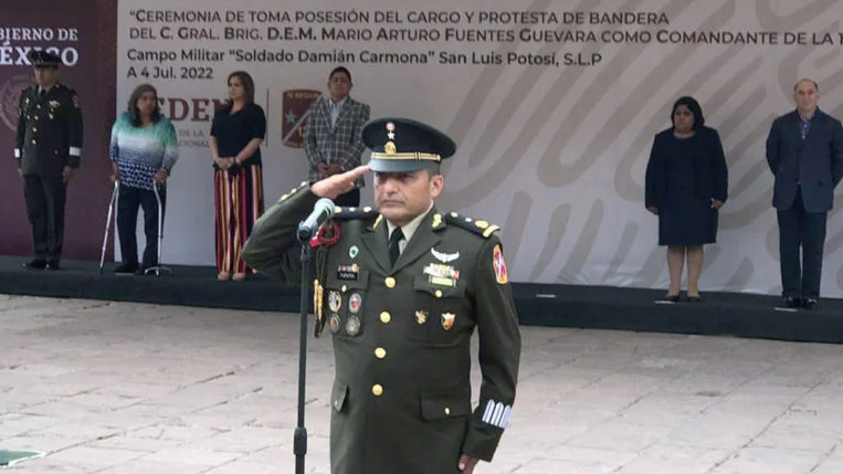 El general brigadier Diplomado de Estado Mayor, Mario Arturo Fuentes Guevara, tomó protesta como comandante de la 12a zona militar del 40 batallón de Infantería en San Luis Potosí, del Ejército Mexicano.