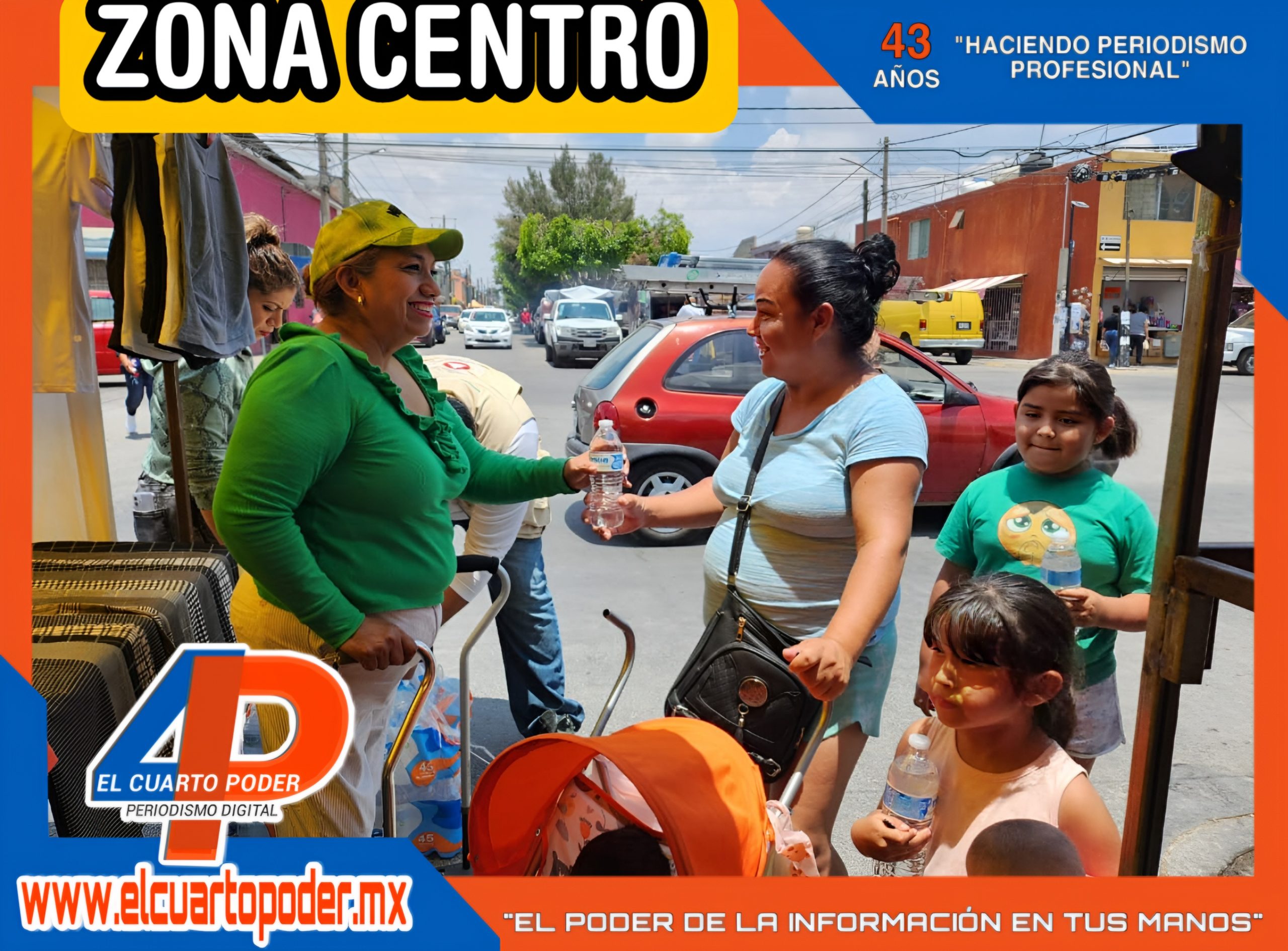 Detalló que a partir de las 9 de la mañana, se entregan cientos de botellas de agua a las personas que acuden a estos mercados como un apoyo a su salud a través de la hidratación.