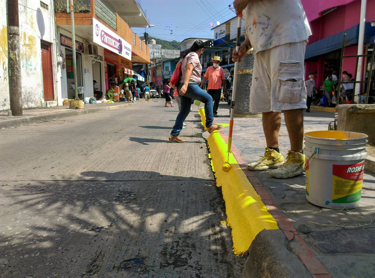 Jesús Ivan Espinoza, de la mencionada dependencia, detalló que, por instrucciones del presidente municipal, Toño Costa, estos trabajos comenzaron el día de hoy con la pintura de la banqueta en amarillo tráfico.