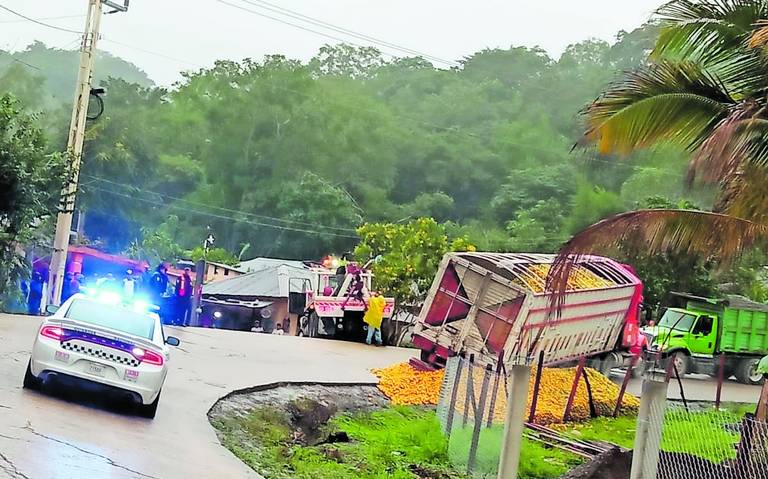 Por segunda vez en menos de 15 días, un tráiler cargado con más de 20 toneladas de naranja perdió parte de la mercancía en plena curva de la vía estatal Huejutla-San Felipe Orizatlán, esto por la inclinación que se ubica exactamente en la comunidad de Huextetitla, por lo que se interrumpió la circulación por más de una hora.