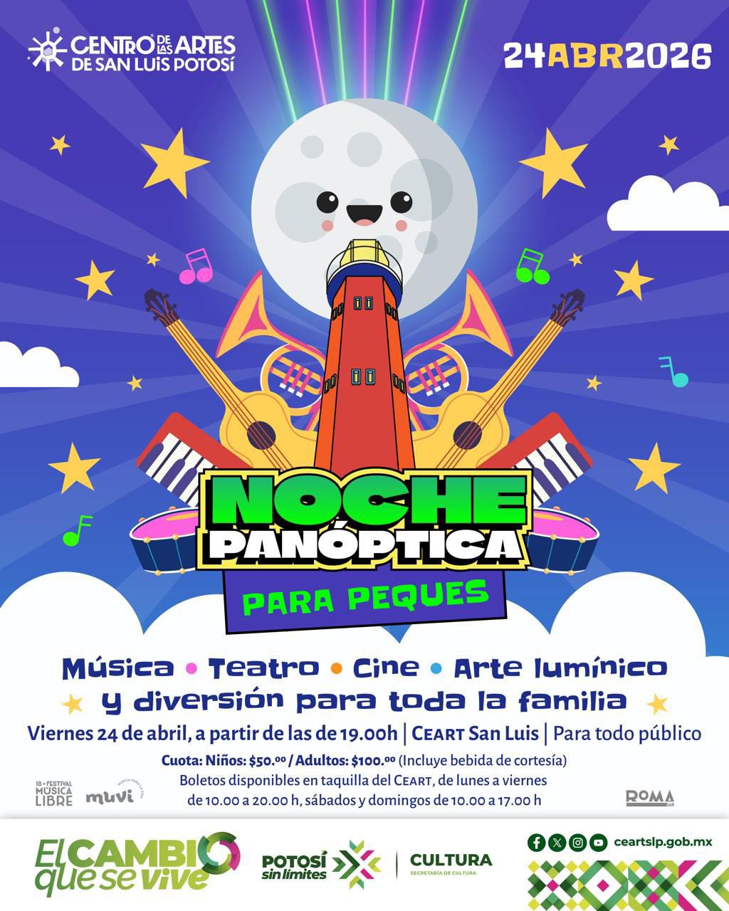 El Centro de las Artes de San Luis Potosí, con el respaldo de la Secretaría de Cultura y siguiendo las instrucciones del gobernador Ricardo Gallardo de implementar una cultura de calidad y para todos, invita al público en general a vivir la Noche Panóptica para Pekes, que se llevará a cabo el viernes 24 de abril, a partir de las 19:00 horas, en las instalaciones del CEART San Luis, con actividades pensadas para niñas, niños y sus familias.