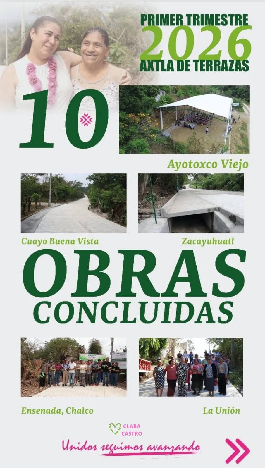 Asimismo, Clara Castro adelantó que vienen grandes noticias para la cabecera municipal, generando expectativa entre los habitantes sobre nuevos proyectos que podrían detonar el crecimiento y desarrollo de la zona.