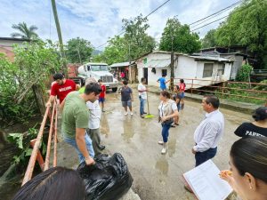 Asimismo, la presidenta municipal anunció que el Ayuntamiento llevará a cabo trabajos de desazolve en viviendas, como parte de las acciones de recuperación.