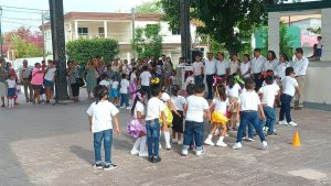 La coordinacion de este acto cívico estuvo a cargo de los alumnos de escuela “Justo Sierra Méndez” que dirige la profesora Osiris Azucena de la Cruz Ojeda, dieron lectura a las efemérides más sobresalientes de la semana que comienza además de la presentación de un bonito baile retro de los años 50 que alegraron la mañana.