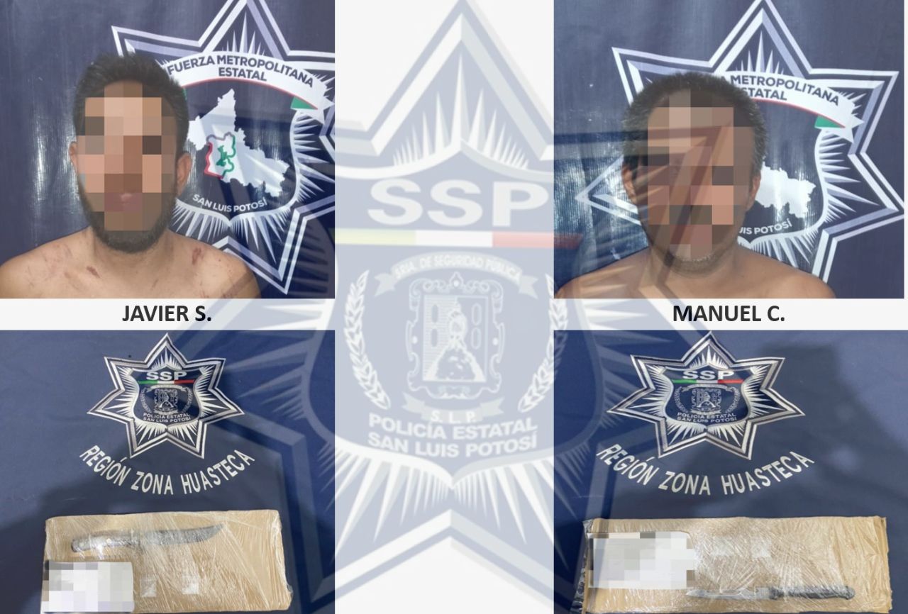Tanlajás, S.L.P.- Derivado de los hechos ocurridos el día 23/04/2021 donde elementos de la Policía Estatal fueron agredidos por civiles armados, se intensificaron los operativos en la zona serrana para la localización y búsqueda de los agresores, logrando la detención de dos sujetos presuntamente por los delitos de ataque peligroso y posesión de droga.