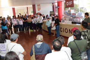 • La titular del Sistema Nacional DIF, Nuria Fernández Espresate reconoció la solidaridad de San Luis Potosí, por las 40 toneladas de víveres que benefician a familias afectadas por el huracán Otis.