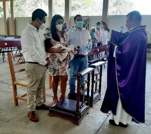 David André Falcón Lázaro es el pequeñito que cumplió tres años de edad, por lo que sus padres el Lic. David Falcón Delgadillo y la Ing. Lucía Guadalupe Lázaro Antonio decidieron festejarle y llevar a cabo su presentación religiosa, la cual tuvo lugar con una misa en la Galera Parroquial San Miguel- San José, ubicada en la Bombonera de Poxtapa en esta ciudad.