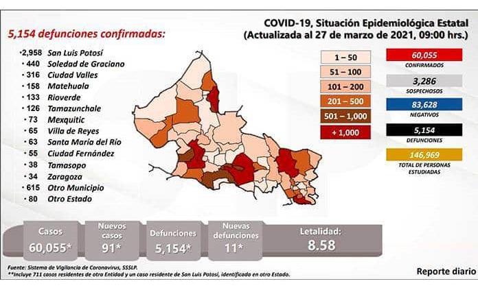 De marzo de 2020 a la fecha, la pandemia ha arrojado un saldo de 5 mil 154 personas muertas por la infección, con un índice de letalidad que sigue subiendo: este día con el 8.58% de muertes por cada cien infecciones.