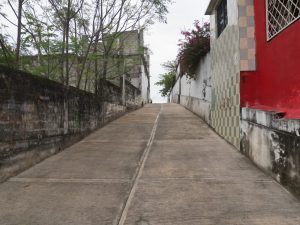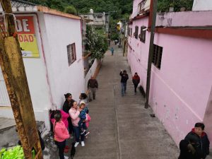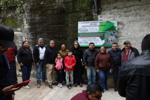 Primeramente, en la Calle del Chote, perteneciente al Barrio San Miguel, acompañado de funcionarios y vecinos, cortó el listón de la pavimentación de 110 metros lineales, mismos que incluyeron barandal y la colocación de 13 tomas de agua domiciliarias, así como la colocación de 8 lámparas led, de un total de 187 que se han colocado en dicho barrio.