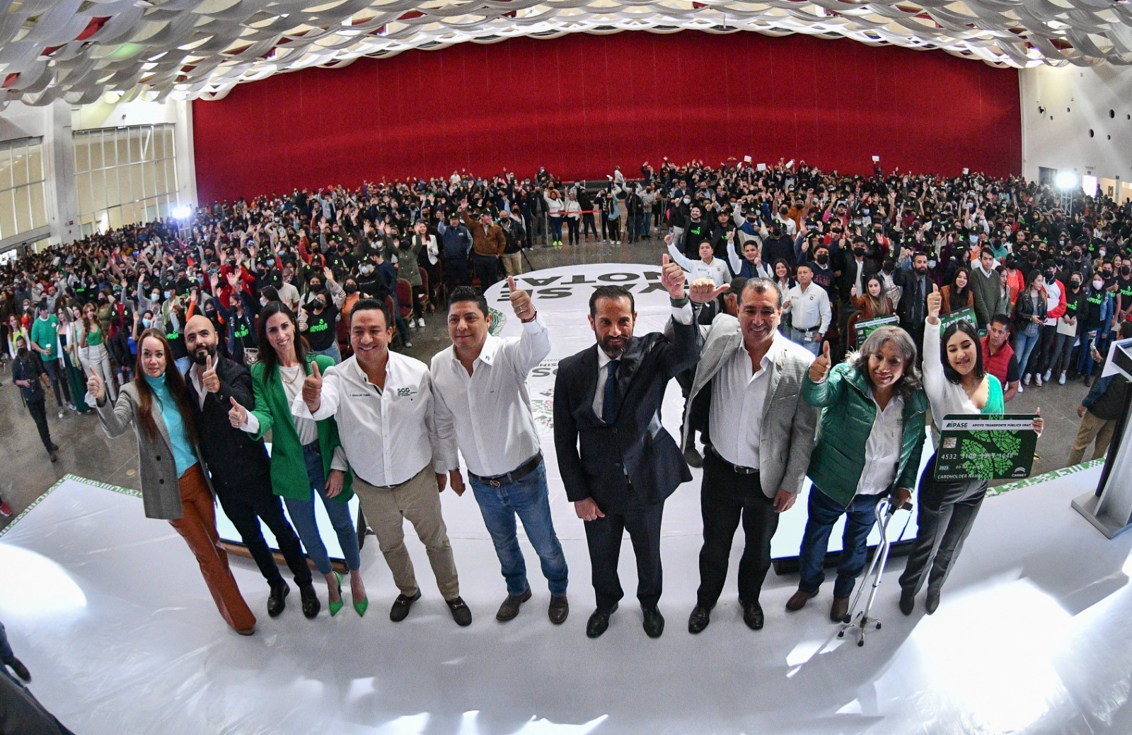 En cumplimiento a un compromiso más con la juventud potosina, el Gobernador de San Luis Potosí, Ricardo Gallardo Cardona, encabezó la segunda entrega de la tarjeta de transporte gratuito del Programa de Apoyo y Subsidio a Estudiantes (Mi Pase), que impulsa el Gobierno del cambio a través de la Secretaría de Comunicaciones y Transportes (SCT), apoyo extendido para estudiantes de bachillerato; además de la Tarjeta Joven, implementado a través del Instituto Potosino de la Juventud (Inpojuve), apoyos que beneficiarán a 60 mil jóvenes estudiantes.