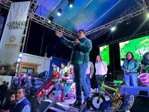 Gallardo Cardona, acompañado de la presidenta del Sistema estatal para el Desarrollo Integral de la Familia (DIF) Ruth González Silva y miembros de su gabinete, expresó a las familias del Altiplano que el próximo año, será todavía mejor para todas y todos, “por eso deseo para ustedes y sus familias todo lo mejor en esta Navidad y que el 2024 venga con más apoyos”.