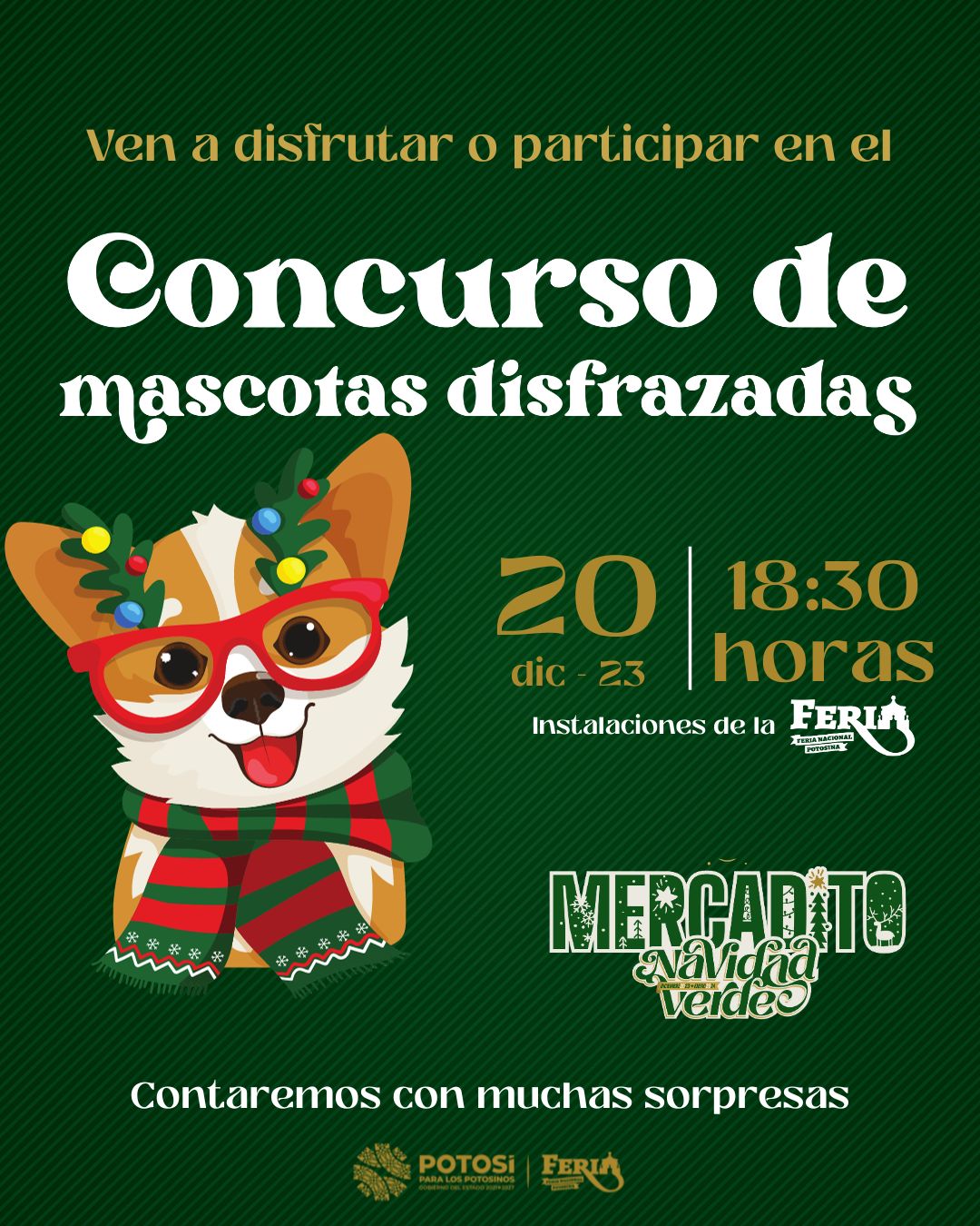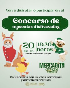 Para que las y los potosinos disfruten de las fiestas navideñas en compañía de todos sus seres queridos, incluyendo a sus mascotas, el Gobierno del Estado invita al “Primer Concurso de Disfraces Navideños para Mascotas”, que organiza el Patronato de la Feria Nacional Potosina (Fenapo) y que se realizará este 20 de diciembre a las 18:30 horas.