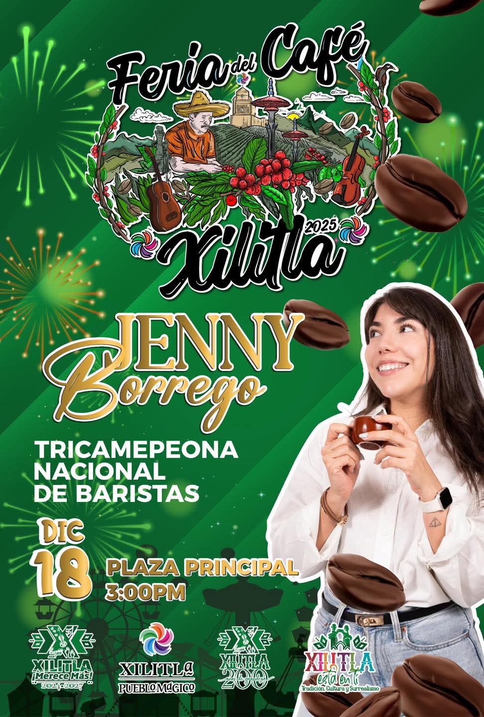 Este 18 de diciembre, disfruta de la conferencia de Jenny Borrego, tricampeona nacional de baristas, como parte de las actividades de la Feria del Café Xilitla 2025.