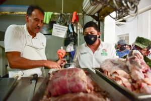 Gallardo Cardona recorrió plazas públicas y el mercado de Tamasopo, donde saludó a la gente que nunca antes había tenido tan cerca a un mandatario potosinos.