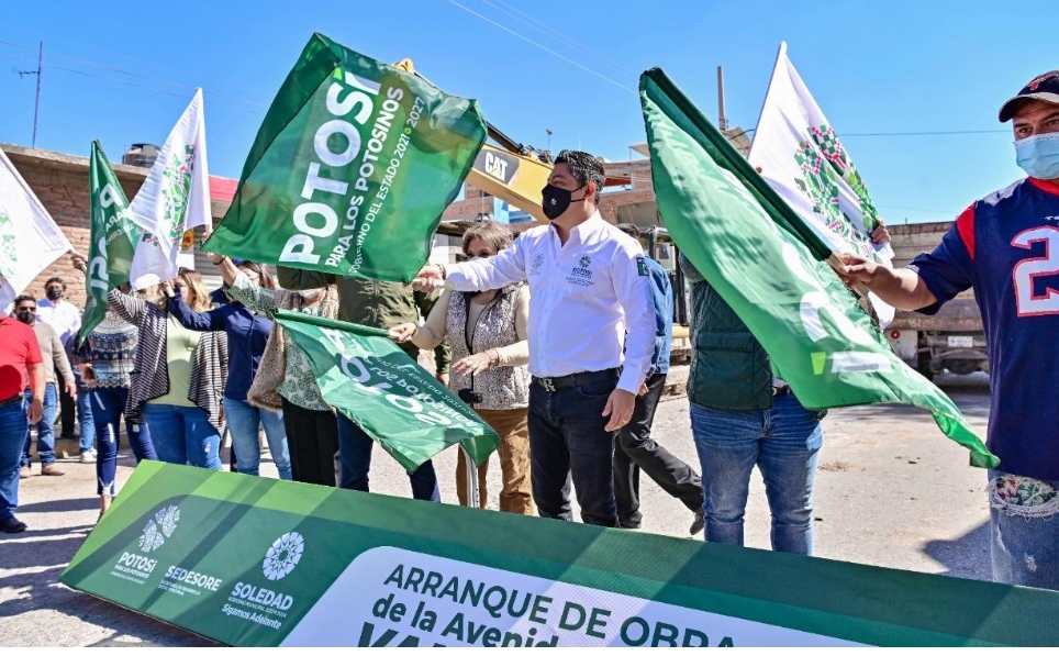 Al arrancar las obras de pavimentación con concreto hidráulico y la sustitución de la red hidrosanitaria de la avenida Valentín Amador en el municipio de Soledad de Graciano Sánchez, el Gobernador del Estado Ricardo Gallardo Cardona anunció una inversión histórica de 500 millones de pesos para infraestructura para esta demarcación, que equivale a nueve años de trabajo pero en uno sólo, así como la perforación de pozos para que no vuelva a faltar agua en esta zona, con el respaldo del ayuntamiento y el Poder Legislativo.