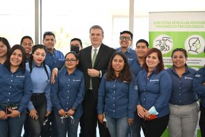 Durante el recorrido acompañaron al Canciller Marcelo Ebrard y al Gobernador de San Luis Potosí Ricardo Gallardo Cardona, los titulares de las Secretarías General de Gobierno (SGG), J. Guadalupe Torres Sánchez; de Desarrollo Económico (Sedeco), Juan Carlos Valladares Eichelmann; del Trabajo y Previsión Social (STPS), Néstor Garza Álvarez y de Finanzas (Sefin), Salvador González Martínez.