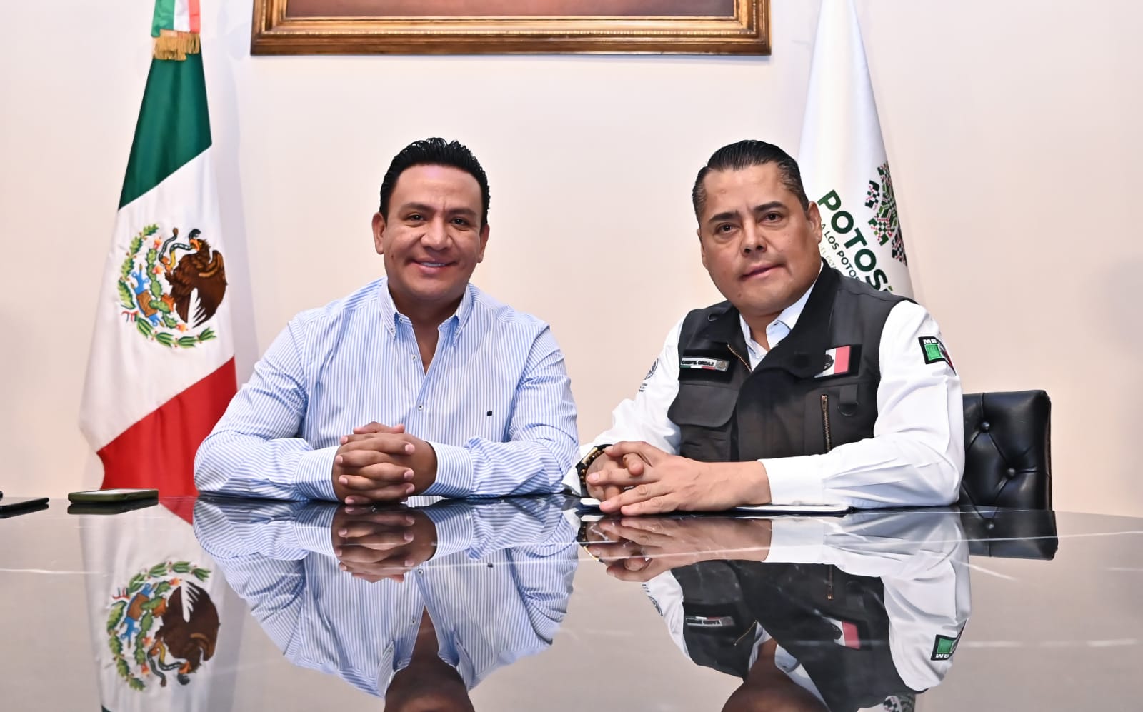El secretario general de Gobierno, J. Guadalupe Torres Sánchez, se reunió este martes con el director de Protección Civil en el Estado, Mauricio Ordaz Flores, para emitir las alertas tempranas a los municipios que pudieran resultar afectados por estas condiciones climatológicas que se prevé se extiendan por cinco días en el territorio potosino.